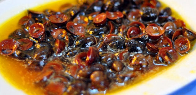 Ốc dừa rửa sạch xào cùng bơ tỏi và gia vị vừa ăn.