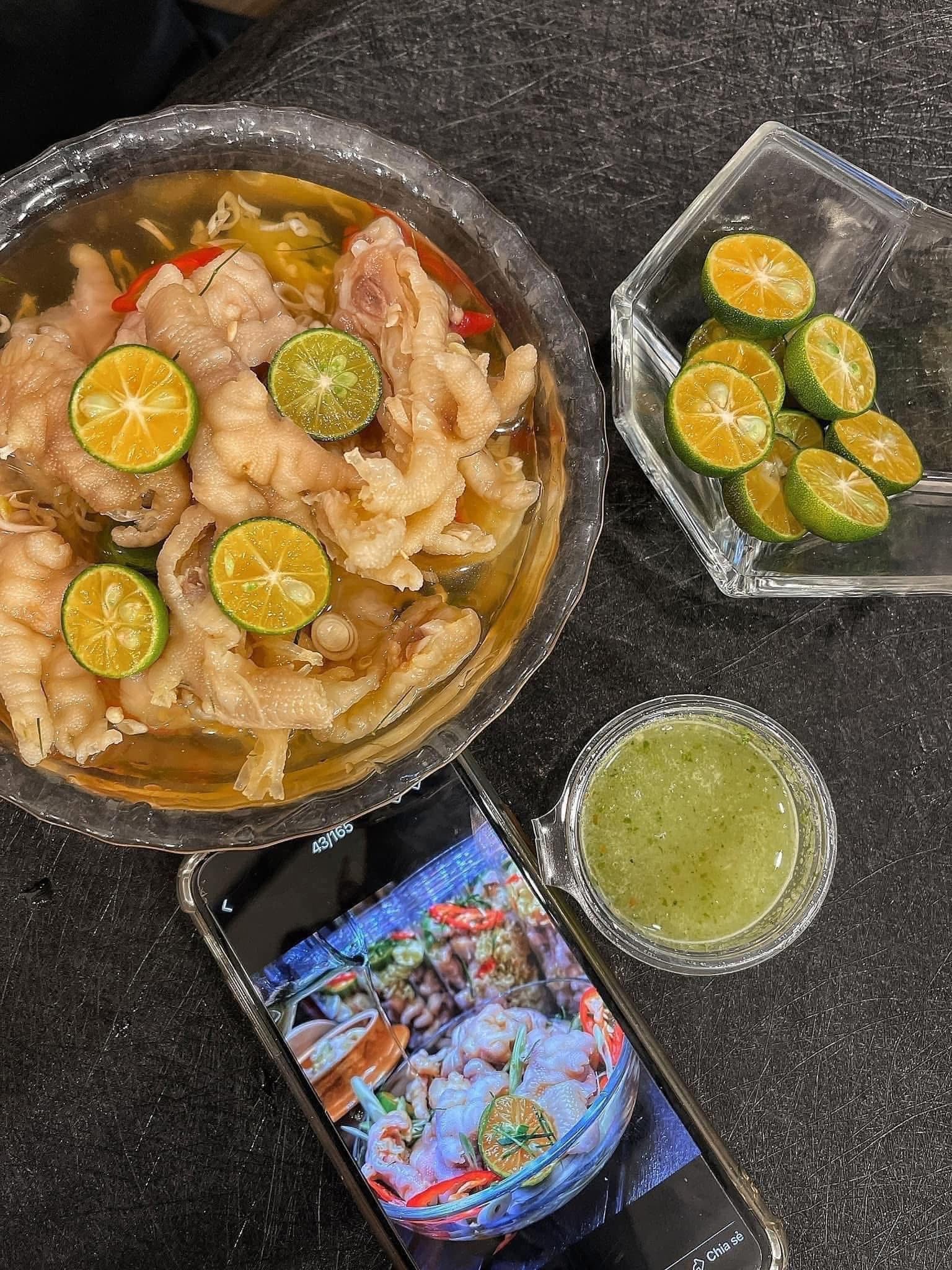 Thành phần: chân gà rút xương, xả, tắc, ớt và gia vị
